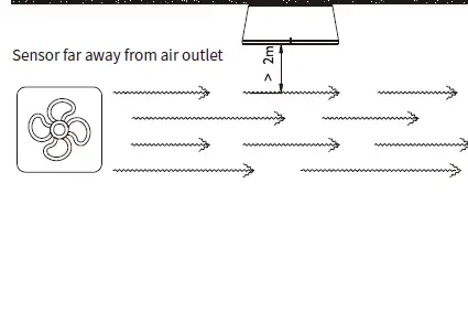 - The sensor installation should be more than 2 meters away from the location of the air outlet, which includes the air outlet of the ventilation pipe, air conditioning air outlet, fan, and other air outlet equipment