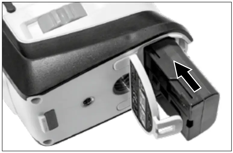 Open the battery compartment and insert the lithium-ion battery as illustrated.