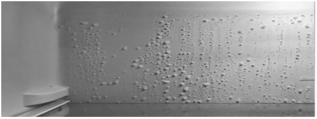 - It is normal for some ice droplets to form on the back wall of a fridge (see below image) as this is a wet wall appliance. This does not constitute a fault with the appliance. Ensure that no items inside the fridge are in contact with the back wall at any time as this may cause freezing of food and possible issues with the drain hole becoming blocked or water on the shelves.
