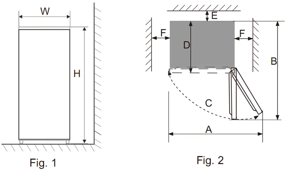 - After placing your appliance in position, wait for 4 hours before using it, so as to allow the refrigerant to settle.