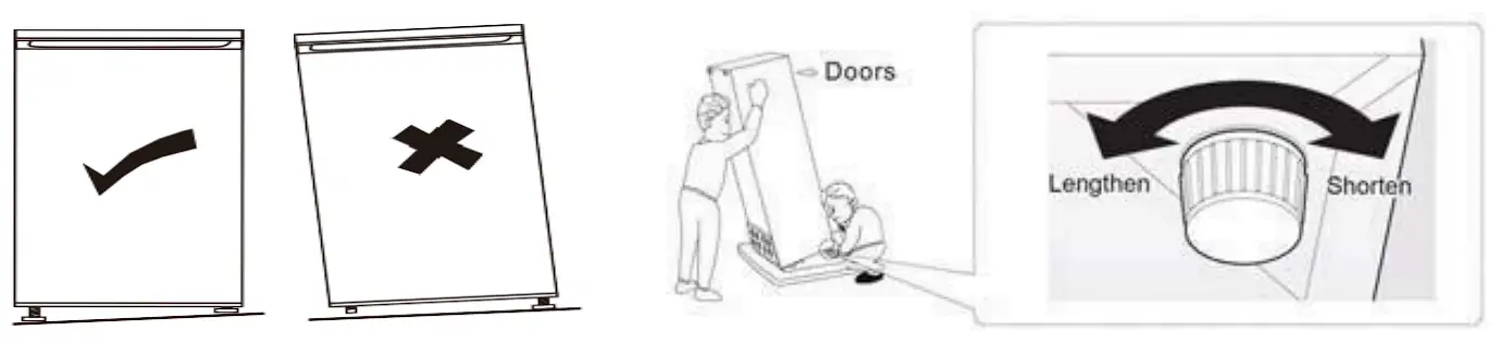 - Make sure to level your appliance using the front leveling feet. If not level, the appliance door gasket sealing performance will be affected, or it may even lead to the operating failure of your appliance.
