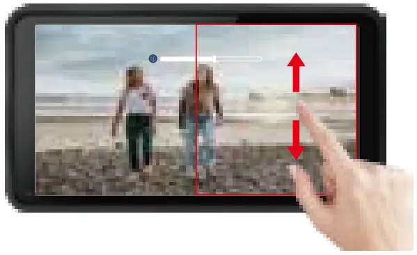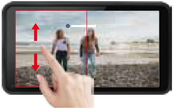 On the right area of the screen, swipe up to increase the backlight brightness. Swipe down to decrease the backlight brightness.