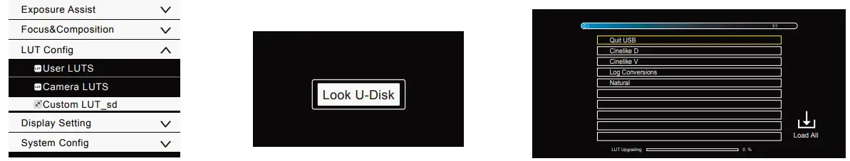 - Find the “Custom LUT” in the LUT config menu, then click “Look U-Disk”.