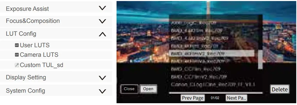 5. Then select “User LUTS” option in LUT setting, and load the downloaded LUT log.