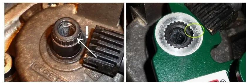 Remove the top bolt (see green circle) and pull the original shifter arm from the transmission shaft. (can be done by hand)