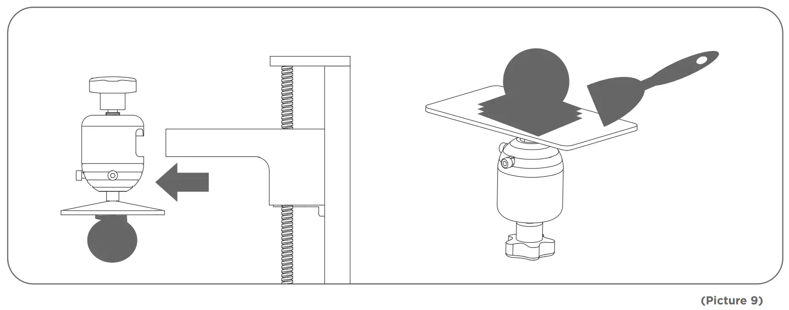 Once printing is completed please wait until the resin on the build platform doesn’t drop any more. Loose the rotary knob and remove the build platform. Use scraper to remove the model and wash it with 95% degree(or higher) ethyl alcohol if you are using standard resin or ABS-like resin(See Picture 9).
