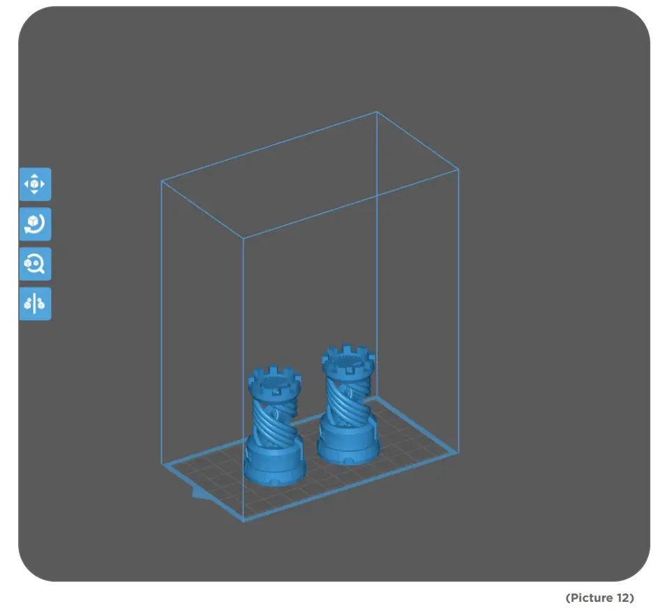 Plug the USB to your printer, wear your mask and gloves and then add resin slowly to the 1/3 level of the tank. (Avoid direct contact with your skin) Select Model file ” Rook. ctb” (See Picture 8) and start printing. Put on the cover to avoid direct sunlight and make sure the printer is leveled and not shaky.