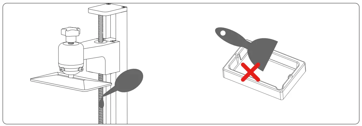 - Be careful when you remove the build platform in case you may smash the 2K Photocuring screen.