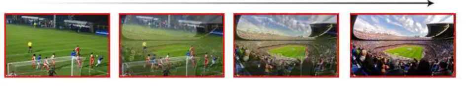 Pressing the MIX button selects a basic A/B Dissolve for the next transition. When the button LED turns on it is active. Then use T-Bar or AUTO to operate the transition. The MIX transition effect as below