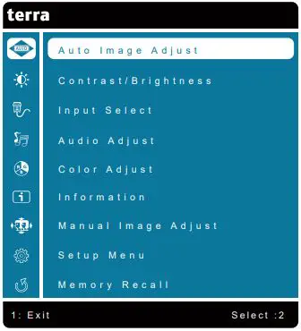 - Auto Image Adjust: To auto adjust Horizontal Position, Vertical Position, Phase (Fine Tune) and Clock (H. Size) of the screen, (VGA mode only).