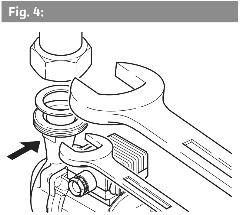 - Use an open-end wrench to secure the pump against twisting (fig. 4).