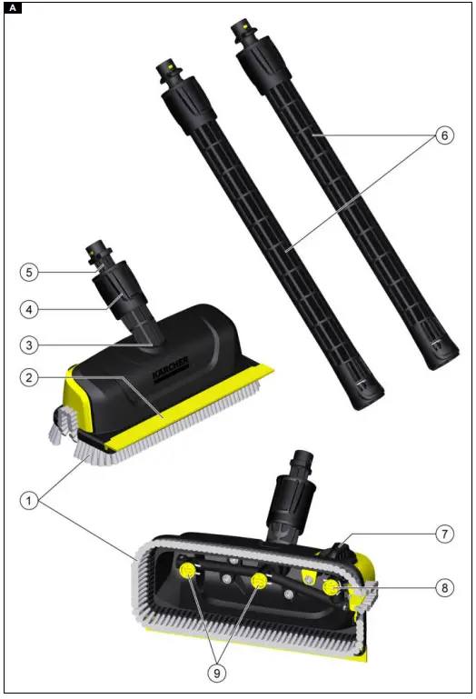 - Do not trigger the high-pressure jet at the high-pressure gun until the power scrubber is on the surface to be cleaned.