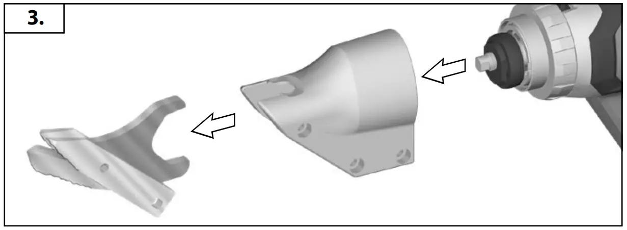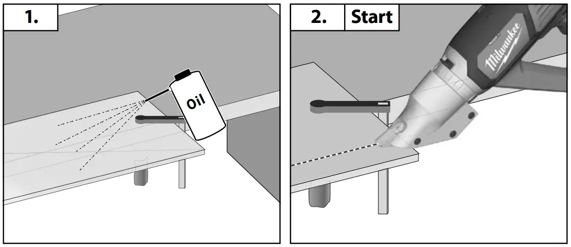When cutting, hold the tool so that the blades are in rm contact with the material for the fastest cutting. Apply even pressure. Too much pressure will tend to jam the tool or cause a rough cut.