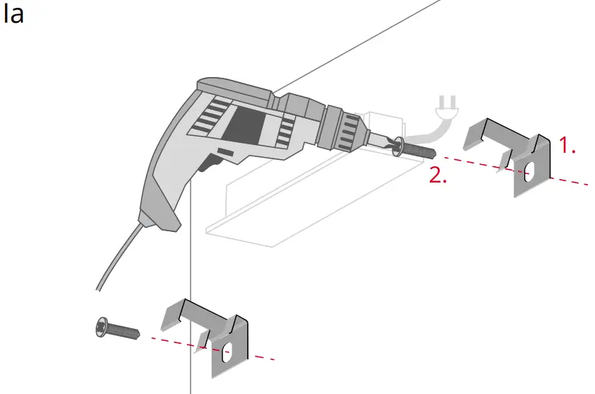 Attach the mounting bracket (1) to the surface with appropriate screws (2) (not provided).