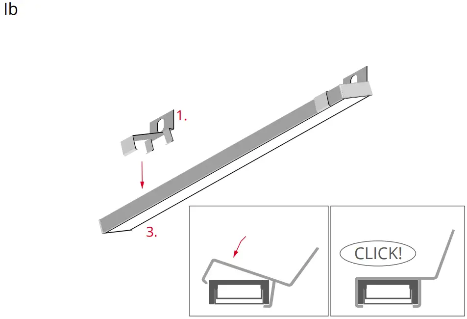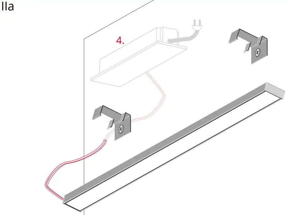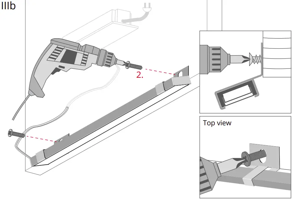 a) Mounting the fixture into mounting brackets screwed to the surface