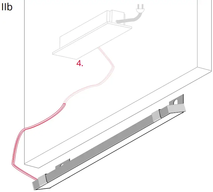 Attach the fixture with brackets to the surface with appropriate screws (2) (not provided).