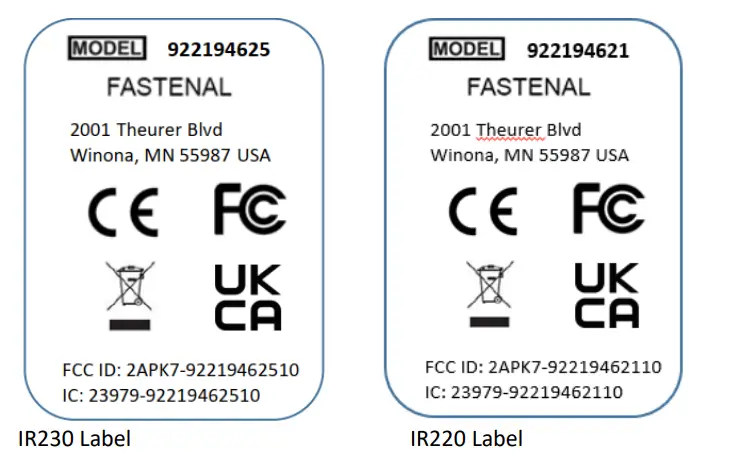 | Regulatory Numbers – Controller with cellular data interface | FCC ID: 2APK7-922194622V10 IC ID: 23979-922194622V10 |