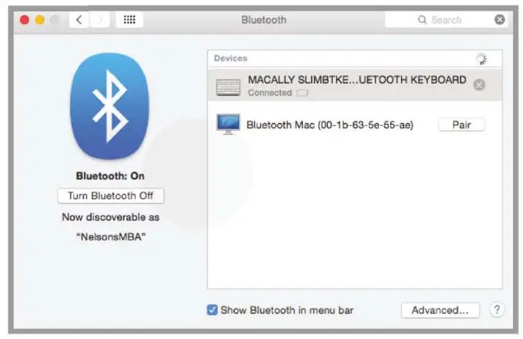 - Once it finds and displays Macally BTNUMKEYPRO or a similar name, selects it to pair and connect.