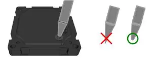 When necessary, users can power off iBS05 by applying a pencil with a blunt tip to the rubber button on the bottom side. The