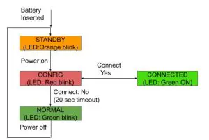After power on, the front button acts as an alarm button. As pressing the button, the LED will light up “green” and trigger an immediate BLE transmission with the button activation event. As the back end server received this status change, it can be used as a warning or alarming.