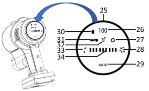 - Left: During use, refer to the Information Screen (25), press the Eco Speed (33) to\ lower the vacuum speed/suction or High Speed (28) to increase speed/suction. The Speed/Suction Indicator (34) will move to show the current speed/suction level (low to high) selected.
