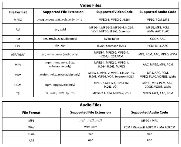 Multimedia Support List