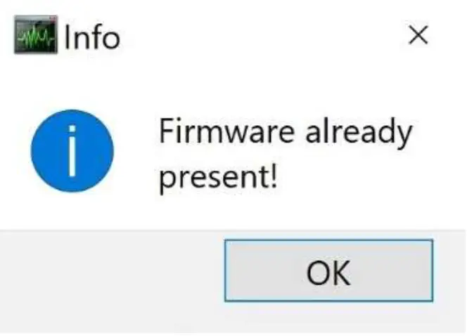 - If the device has the latest firmware, Acheron will inform the user that the latest firmware is already present