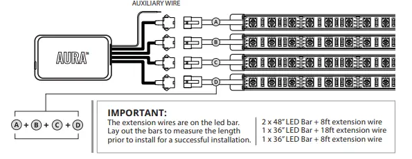 As shown below, connect all the LED bars to the control box with the included extension cables.
