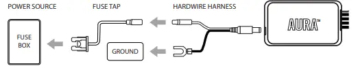 or connect the positive wire to the fuse tap and connector the open negative wire to a ground (any metal surface). Then plug the fuse tap into the 10amp switched fuse.