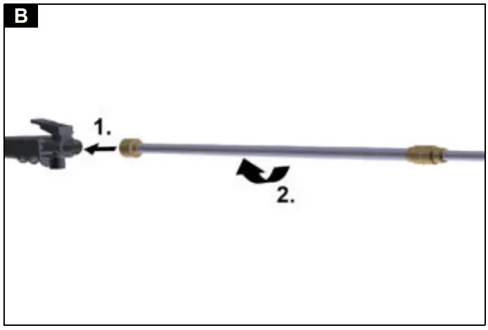 - Turn the spray lance until it is aligned with the handle pointing downwards.