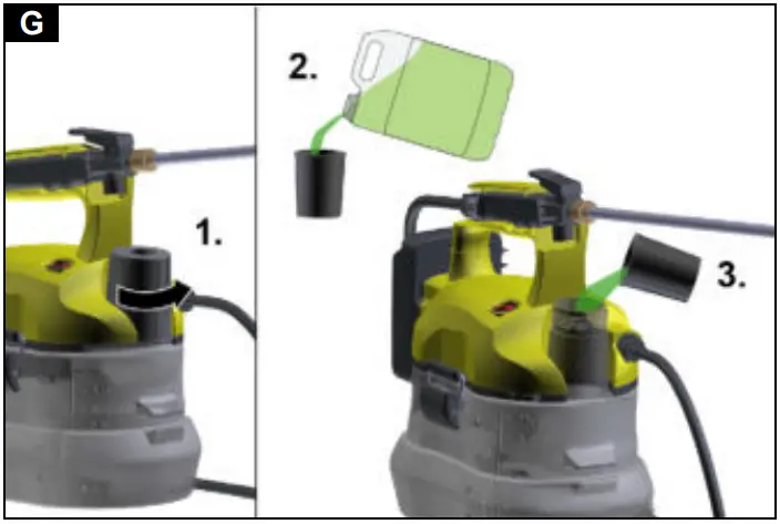 - Risk of injury. Pay attention to any danger from the fluid being sprayed and consult the markings on the container or the information supplied by the manufacturer.