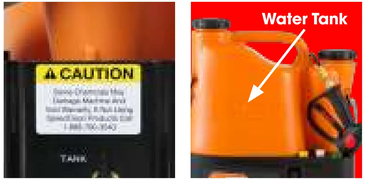 - Always turn machine off after use or when tank is empty. Do not spray the unit with water or chemicals.
