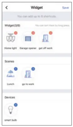 Widgets are the quick access to your Meross devices and Scenes. To enable it, please go to Account-> Widget to add shortcuts first. And then follow below steps on your smartphones to activate them.