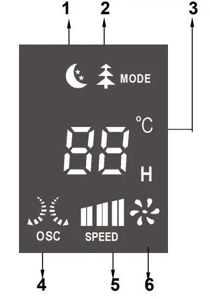 3. Room temperature display (°C) or timer (H)