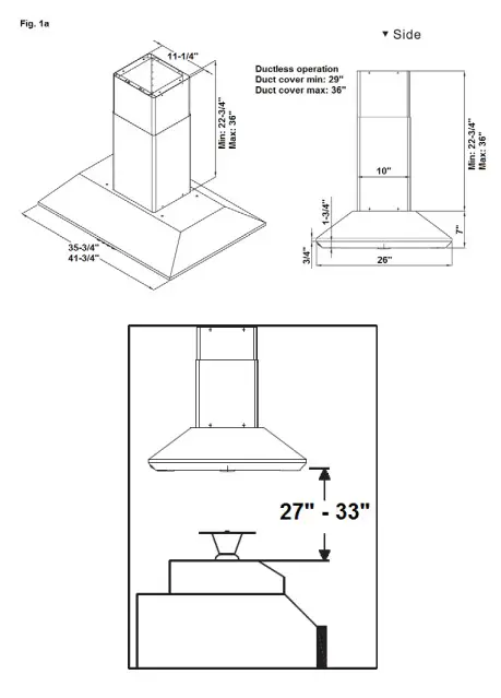 b. Recommended distance between cooktop and range hood is 28‖ – 33‖.