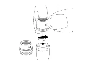 - Thread the supplied adapter onto the microphone before inserting it into the shock mount.