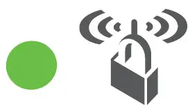 Solid green. WiFi security is enabled (WPA or WPA2). Blinking green. A WPS connection is being established.