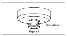 - Assemble canopy by rotating key slot in canopy over shoulder screw in hanger bracket, taking care not to pinch the wires. Tighten shoulder screw. Fully assemble and tighten second shoulder screw that was previously removed. (Figure 1)