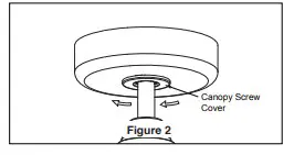 To avoid possible fire or shock, make sure that the electrical wires are completely inside the canopy housing and not pinched between the housing and the ceiling. - Securely attach and tighten the canopy screw cover over the shoulder screws in the hanger bracket utilizing the key slot twist-lock feature. (Figure 2)