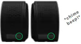 - While the speakers are off, press and hold the power button until you hear a chime and then a beep.