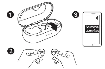 - Open the Bluetooth menu on your mobile device, search for “Soundcore Liberty Neo”.