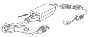 iii. Plug the DC end of the adapter to the notebook, and the male end of the power cord to the electrical outlet.