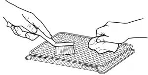 - Remove all accessories from the unit, including the crumb tray, and wash separately. Use a non-abrasive cleaning brush to more thoroughly wash the air fry basket. Accessories are hand-wash recommended. The air fry basket and wire racks can be put in the dishwasher, but may wear more quickly over time.