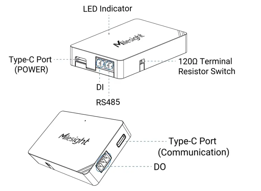 120 Ω Terminal Resistor Switch: the device will add a 120Ω termination resistor to avoid data corrupting reflections if RS485 data rate is high