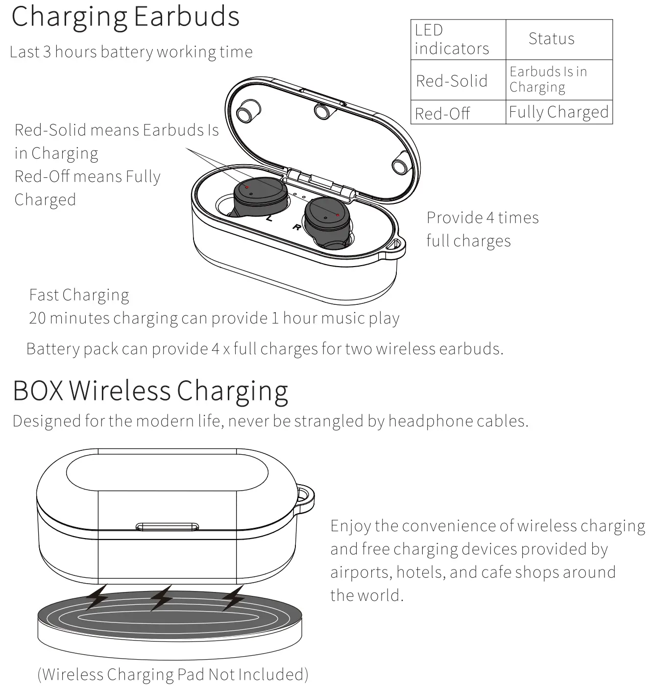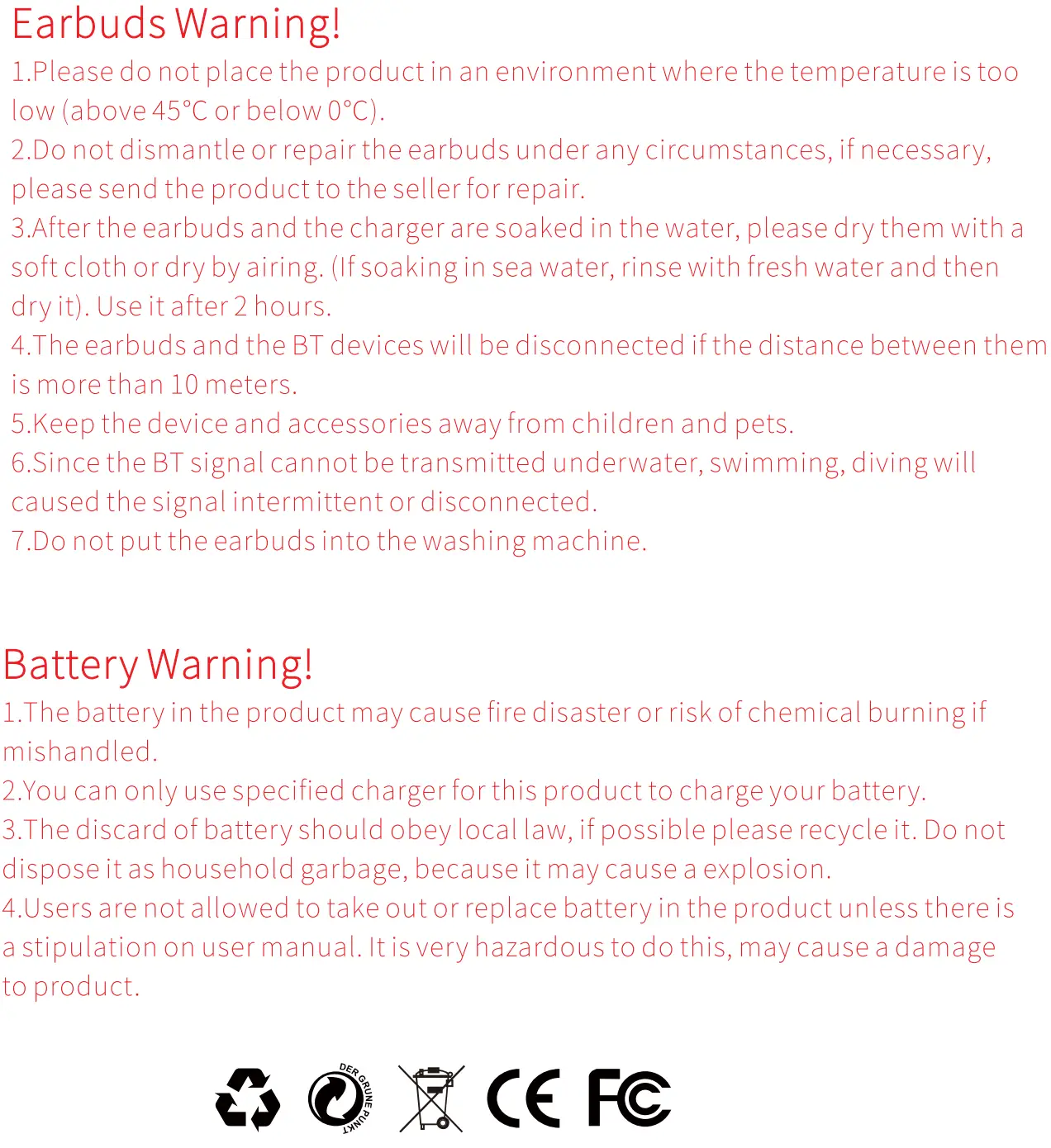 2.Please turn off Bluetooth at your phone after use the earbuds.