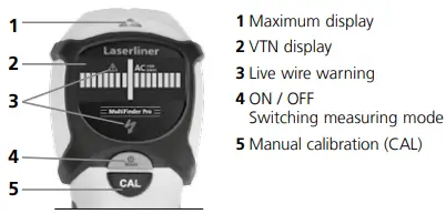 Pressing the CAL button (5) manually calibrates the device. This allows measurements to be restarted and objects to be isolated more