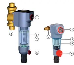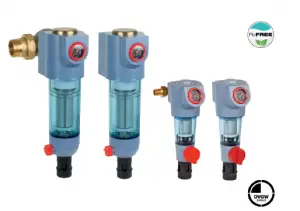 The reverse rinsing filters ensure a continuous supply of filtered water. The fine filter prevents the ingress of foreign bodies, for example rust particles, strands of hemp and grains of sand and thus reduces the probability of corrosion. The fine filters are used in systems where an existing pressure reducing valve is fitted or where one is not required. Both horizontal and vertical installation is possible