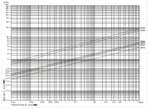 | Flow value at ∆p=0.2 bar | m3/h | 2.4 | 3.4 | 3.9 | 4.4 | 7.2 | 8.9 |