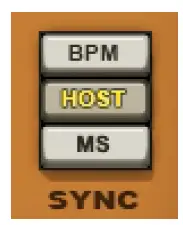 Sync toggles between Release Time modes. In Host and BPM modes, Release value displays BPM multiplier values.