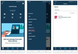 - From the home page of the Alexa app, select the “ ” icon in the top-right and select Skills & Games from the sidebar.